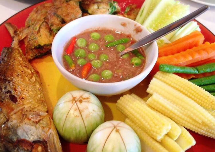 ใส่พริกขี้หนูลงไปตำให้แหลกเข้ากับเนื้อกระเทียมและกะปิ เมื่อเสร็จแล้วให้ใส่น้ำตาลปี๊บ ตำให้เข้ากัน