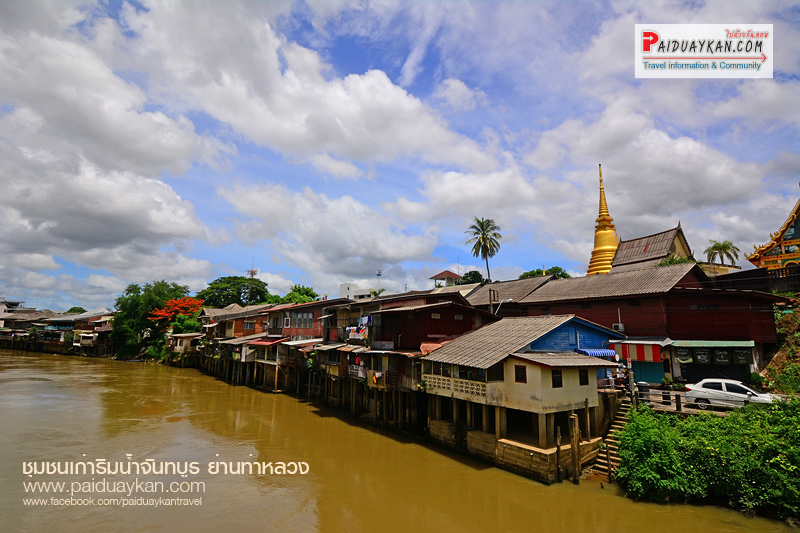 ชุมชนเก่าริมน้ำย่านท่าหลวง หากใครที่มาเยือนจังหวัด จันทบุรี แล้วไม่ควรพลาดมาเดินเล่นชมสถาปัตยกรรม บ้านเรือนโบราณ ที่ ชุมชนริมน้ำจันทบูร ชุมชนเก่าแก่ริมแม่น้ำจันทบุรี มีจุดเริ่มต้นจากเชิงสะพานวัดจันทร์ เป็นแนวไปตลอดจนถึงชุมชนตลาดล่าง เป็นที่พักอาศัย และร้านค้าของชุมชนที่มีอายุเกือบร้อยปี ซึ่งสร้างมา ตั้งแต่สมัยรัชกาลที่ 5 มีลักษณะเป็นตึกแถว โบราณมี ลวดลายไม้จำหลักอ่อนช้อย งดงาม อยู่ตามบานประตูหน้าต่างและมุมอาคาร เป็นชุมชนเก่าแก่ที่มีคุณค่าทางประวัติศาสตร์ที่มีการอนุรักษ์เอาไว้เพื่อการท่องเที่ยว ซึ่งปัจจุบันยังมี กองถ่ายละคร และกองถ่ายภาพยนตร์ รวมทั้งภาพยนตร์โฆษณา มาใช้โลเกชั่นบริเวณนี้กันบ่อยครั้ง ย่านท่าหลวง-ตลาดล่าง มีความสำคัญต่อบทบาทการค้ากับต่างประเทศของจันทบุรีในยุคนั้น คือเป็นจุดที่เรือบรรทุกสินค้าของป่าที่ รวบรวมมาได้จากป่าแถบตะเคียนทอง น้ำขุ่น คลองพลู วังแซ้มในบริเวณ เขาคิชฌกูฎและ เขาสอยดาว จะล่องลงมาตามลำน้ำจันทบุรี และ มาเทียบท่าที่ตลาดท่าหลวงโดยมีกล่มชาวชองซึ่งเป็นชนพื้นเมือง เดิมที่อาศัยอยู่ในแถบเทือกเขาในจันทบุรี ระยอง และตราด เป็นแรงงานในการจัดเก็บของป่านำมาจำหน่าย ในตัว เมืองจันทบุรี ในปีหนึ่งชาวชองจะล่องแพนำสินค้ามาจำหน่ายในเมืองเพียง ครั้งเดียว คือในระหว่างเดือน 10 ถึง 12 (เดือนกันยายนถึงพฤศจิกายน) เนื่องจากเป็นฤดูน้ำหลากสามารถล่องแพลงมาตามลำน้ำ ได้สะดวก ส่วนในฤดูแล้ง ระหว่างเดือน 3 ถึง 5 (เดือนกุมพาพันธ์ถึงเดือนเมษายน)ต้องลำเลียงทางเกวียนซึ่งลำบากและใช้เวลานาน จึงไม่ เป็นที่นิยมในช่วงที่กองทหารฝรั่งเศสเข้ามายึดครองจันทบุรี (พ.ศ. 2436-2447) การค้าขายในย่านนี้เป็นไปอย่างคึกคัก นอกจากสินค้าป่าแล้ว ยังมีการลักลอบจำหน่ายสินค้าประเภทสุรา ฝิ่น กาแฟ ชา การเจริญเติบโตทาง เศรษฐกิจของย่านท่าหลวง-ตลาดล่างส่งผลให้ทางรัฐบาลให้ความสำคัญกับการพัฒนาระบบสาธารณูปโภค ต่างๆ ในบริเวณนี้ก่อนบริเวณอื่น