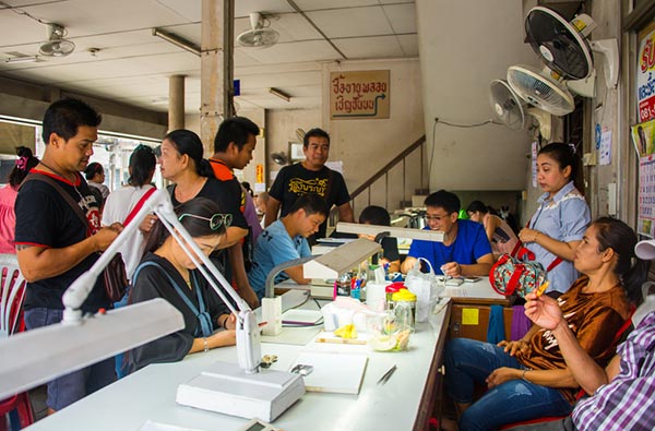 ถนนอัญมณี "ถนนอัญมณี" หรือ "ตลาดพลอย" ตั้งอยู่ภายในบริเวณถนนศรีจันท์และซอยกระจ่าง นับเป็นถนนเศรษฐกิจของจังหวัด เพราะเป็นที่ตั้งของร้านเจียระไนพลอยและร้านค้าอัญมณีต่าง ๆ ซึ่งอาจนับได้ว่าสถานที่แห่งนี้เป็นตลาดค้าพลอยเจียระไนที่ใหญ่ที่สุดของประเทศ ในวันศุกร์-อาทิตย์ ตั้งแต่เวลา 10.00-15.00 น. ยังสามารถเห็นบรรยากาศการซื้อขายพลอยของพ่อค้าพลอย ที่เดินทางมาจากที่ต่าง ๆ กันทั้งชาวไทยและชาวต่างชาติ นอกจากนี้ ยังมีการตั้งศูนย์อัญมณีและเครื่องประดับ (ข้างโรงแรมเค.พี.แกรนด์) ซึ่งสมาคมผู้ค้าอัญมณีและเครื่องประดับจันทบุรี ได้ริเริ่มจัดตั้งศูนย์จำหน่ายอัญมณีและเครื่องประดับขึ้นในปี 2546 โดยต้องการให้ศูนย์แห่งนี้เป็นที่จำหน่ายสินค้าอัญมณีและเครื่องประดับที่มีคุณภาพของประเทศอย่างแท้จริง สัญลักษณ์ของศูนย์เป็นสถาปัตยกรรมไทยผสมรูปทรงของเหลี่ยมอัญมณีเพื่อสื่อถึงความเป็นเมืองอัญมณี ซึ่งสามารถติดต่อสอบถามรายะเอียดเพิ่มเติมได้ที่โทรศัพท์ 0 3930 3118-9 เปิดบริการทุกวันเวลา 08.00-17.00 น.