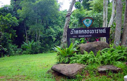 น้ำตกคลองนารายณ์ เป็นน้ำตกขนาดกลางสูงราว 25 ม.สายน้ำไหลจากผาสูงชันลดหลั่นลงมาผ่านโขดหิน น้ำใสสะอาดและมีน้ำมากตลอดปี บรรยากาศโดยรอบค่อนข้างเงียบสงบอยู่ท่ามกลางป่าดงดิบชื้นที่อุดมสมบูรณ์ด้วยพันธ์ไม้หลากชนิด คือพระราชพิธีในการสถาปนาซึ่งเป็นพระมหากษัตริย์ ไม่มีประวัติระบุว่ามีการนำน้ำจากน้ำตกแห่งนี้มาเป็นน้ำศักดิ์สิทธิ์