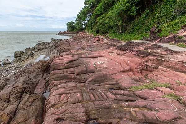 ลานหินสีชมพู จุดชมวิวลานหินสีชมพู" ตั้งอยู่ภายในบริเวณเขตห้ามล่าสัตว์คุ้งกระเบน อำเภอท่าใหม่ โดยในช่วงเวลาน้ำลงตอนกลางวัน ตั้งแต่เดือนกุมภาพันธ์-มิถุนายน จะเผยโฉมหินสีชมพูอมม่วง-สีน้ำตาลแดง ออกมาให้ได้ยลความสวยงามโดดเด่น ปัจจุบันศูนย์ศึกษาการพัฒนาอ่าวคุ้งกระเบน อันเนื่องมาจากพระราชดำริ ได้เปิดพื้นที่ให้เป็นแหล่งท่องเที่ยวแห่งใหม่ของจังหวัด เพื่อให้ประชาชนเข้ามาท่องเที่ยวและศึกษาเส้นทางเดินธรรมชาติได้ทุกวัน สำหรับใครที่มาชมความสวยงามของลานหินสีชมพูแห่งนี้ คือช่วงเช้าพระอาทิตย์ขึ้นถึง 9 โมงเช้า ช่วง 4 โมงเย็นถึงพระอาทิตย์ตกดิน และช่วงฟ้าเปิดหลังจากที่ฝนตกใหม่ ๆ
