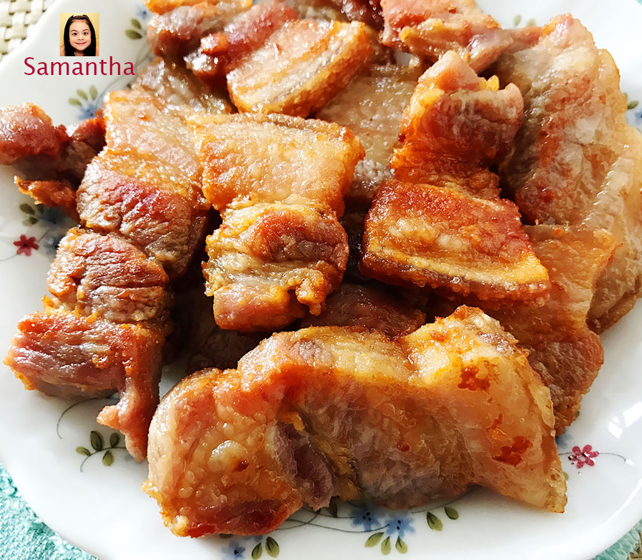 ตั้งกระทะใส่น้ำมัน ใช้ไฟกลางค่อยแรง นำหมูที่หมักไว้ลงไปทอดจนสุกเหลือง แล้วตักขึ้นสะเด็ดน้ำมันพักไว้