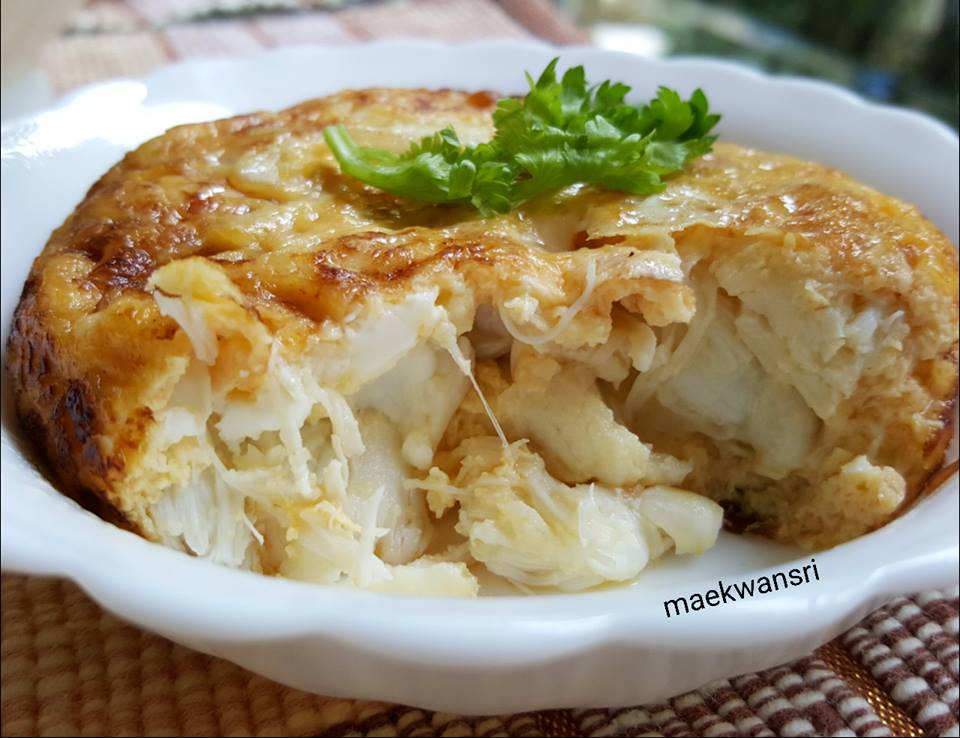 เสิร์ฟ โรยเนื้อปูไว้ด้านบนเพื่อความสวยงาม