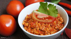 - จึงใส่มะเขือเทศลงไปผัด ปรุงรสด้วย น้ำตาลปี๊บ เกลือป่น และใส่ น้ำเปล่านิดหน่อย ผัดให้ส่วนผสมสุก ปิดไฟ
